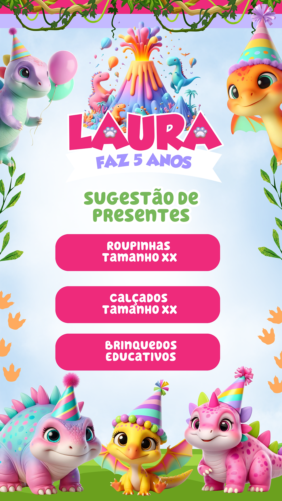 Convite Interativo - Dino Baby Menina