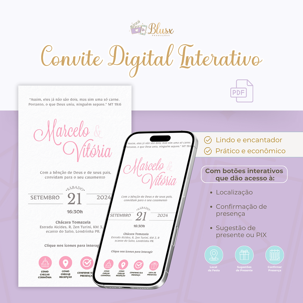 Convite Interativo - Casamento - Rosa 19